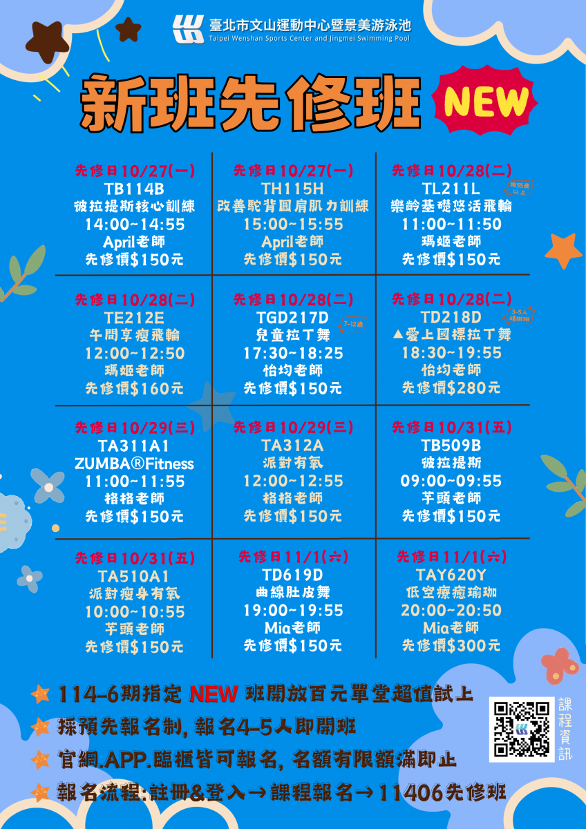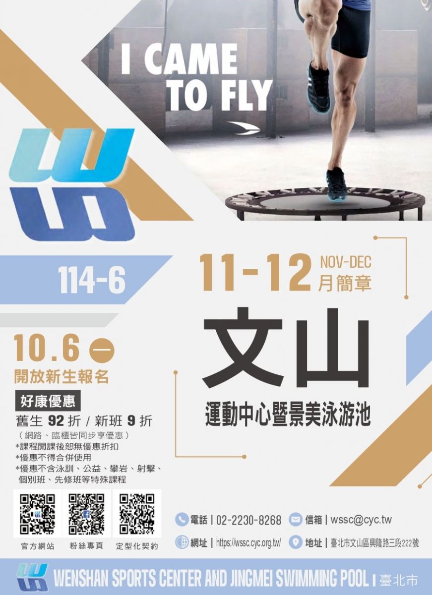 【臺北市文山運動中心|114-6期11-12月運動研習】