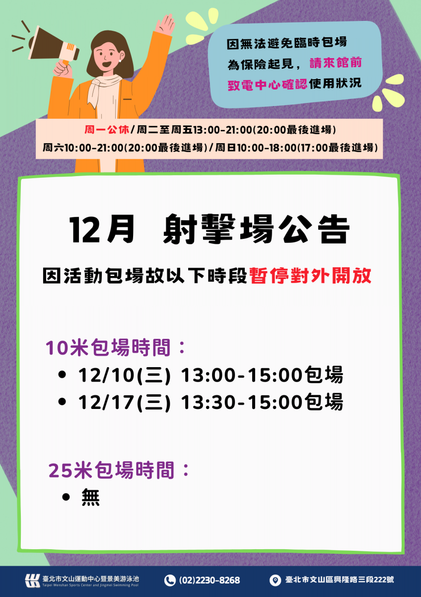12月射擊場公告