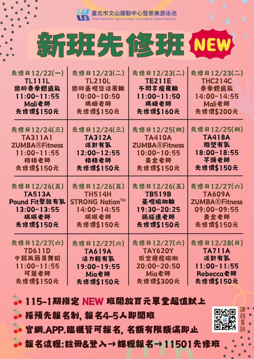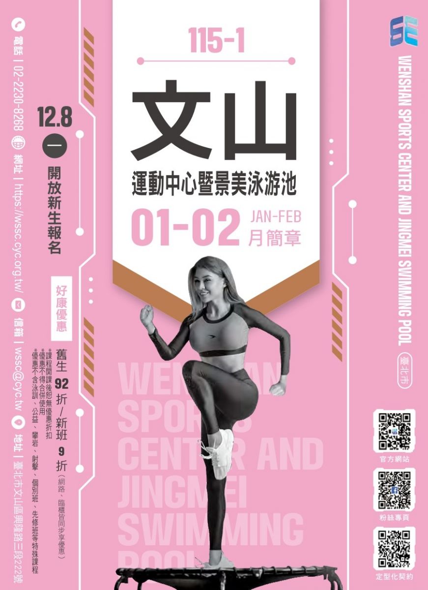 【臺北市文山運動中心|115-1期1-2月運動研習】