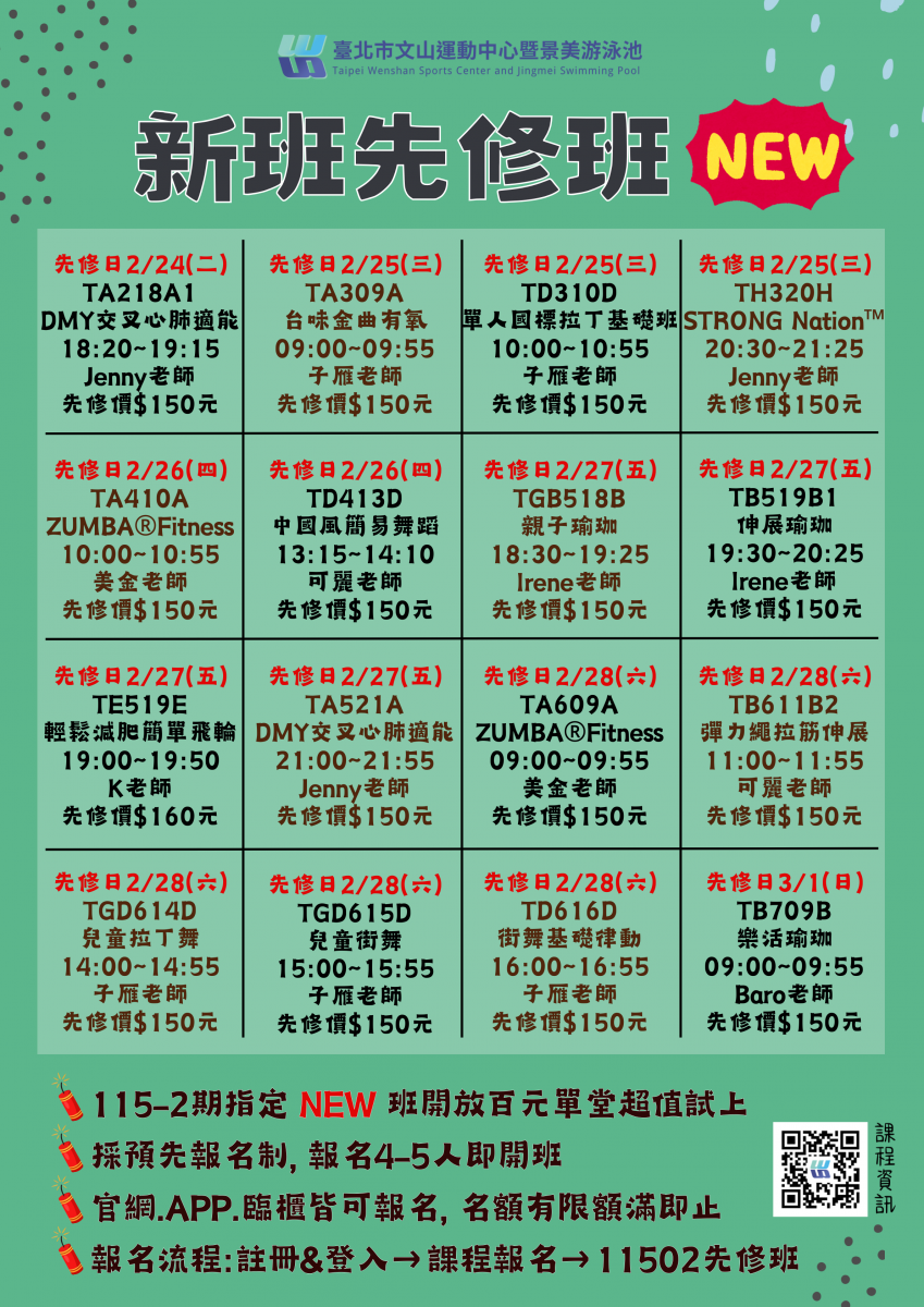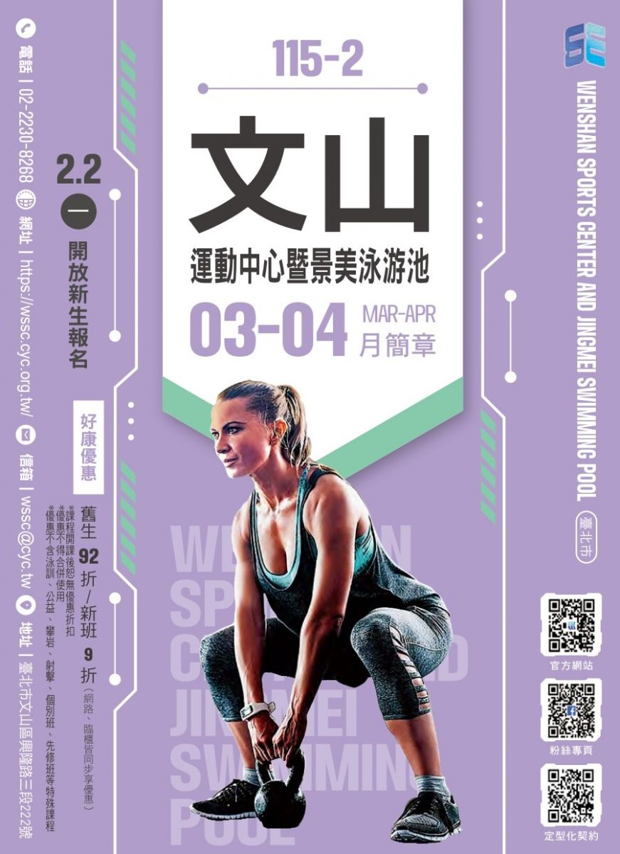 【臺北市文山運動中心|115-2期3-4月運動研習】