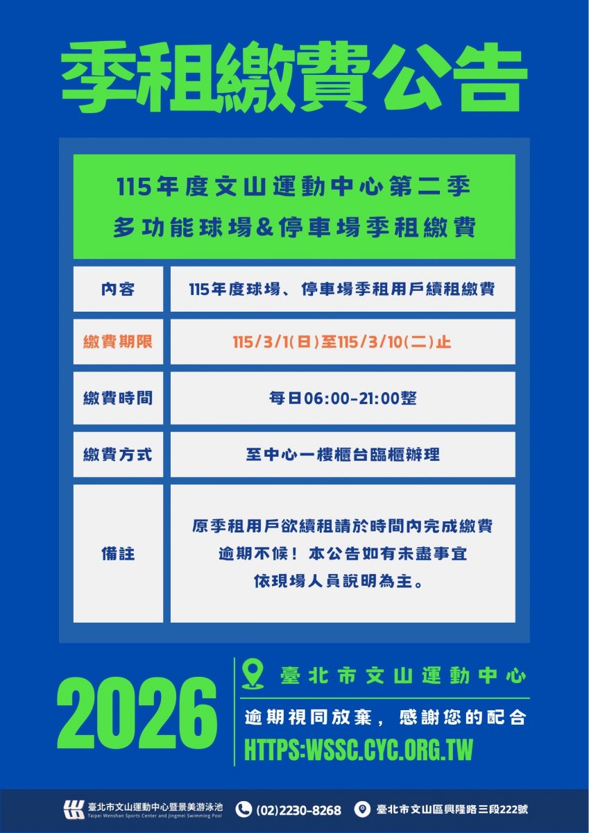 115年第2季多功能球場&停車場繳費
