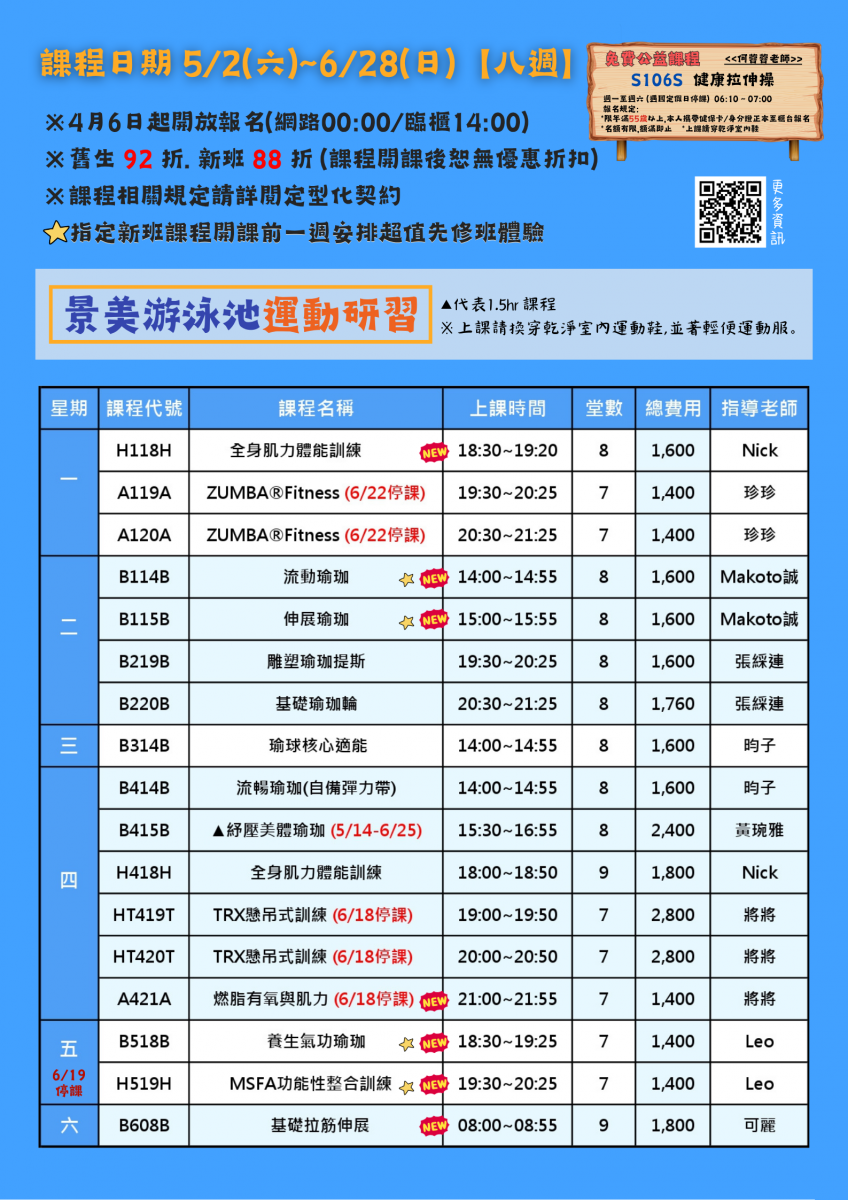 ◆指定NEW班開放百元超值試上,採預先報名制。