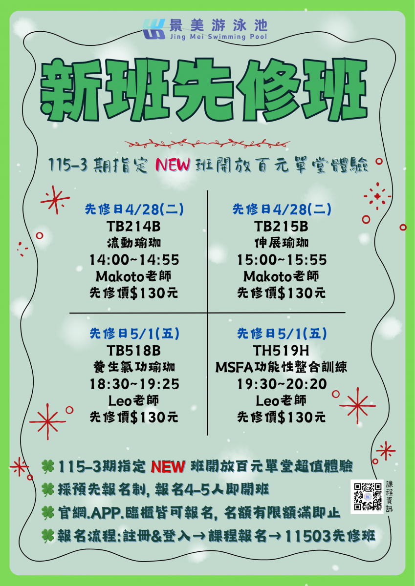 【景美游泳池|115-3期5-6月運動研習】